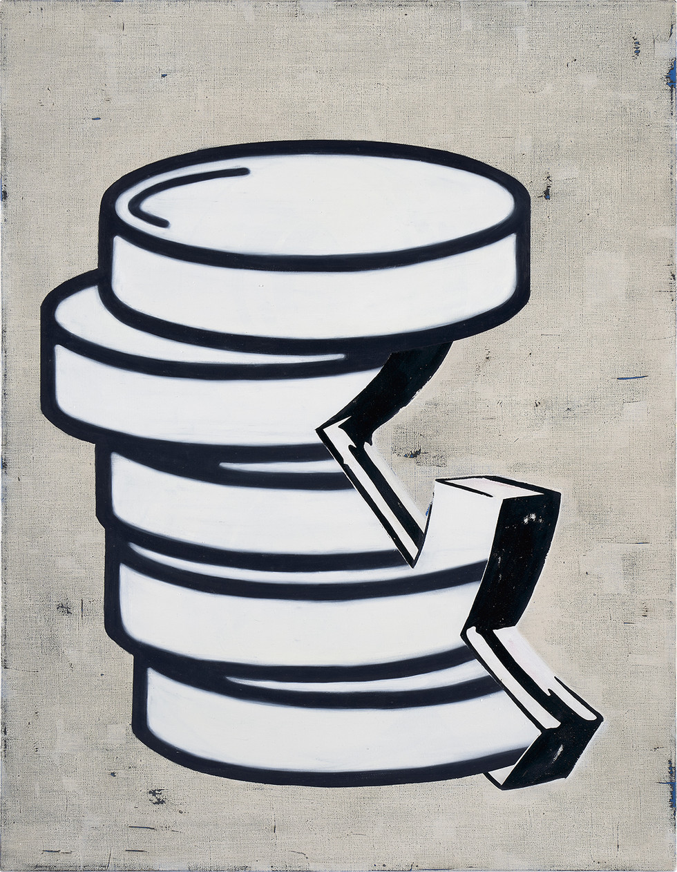 Heads and tails appear and disappear throughout the illusionistic space of Anne Neukamp’s paintings. Pile ou Face, the background becomes the foreground, the signifier escapes the signified, shadows drop before our eyes. In her pictorial approach to semantics, Anne Neukamp composes with the idiomatic motifs, logos, pictograms, and mascots that populate our informational subconscious. Deceptively, she juxtaposes layers, merges them, and makes them transparent or opaque. Permeated by the materiality of painting and stripped of their functionality, signs and images designed for everyday efficiency take on sculptural proportions.