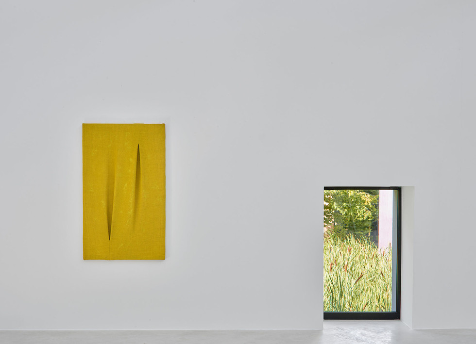 After Gutai’s dissolution, Maekawa progressively resolved the raw, vulgar texture of the burlap sack and he started using cloths as his sole material. His work became quieter and more structured. He used fine cloths on which he added delicate patterns utilising a sewing machine. “What and how much can you express without using paint?” was his main goal at that time. The compositions “Untitled (151030)” and “Untitled (140925)” show refined and precise sewing techniques of pleats and nips exploring the spatial dimensions of the canvas. In a way, these works resonate with Lucio Fontana’s Concetto Spaziale, although Maekawa – faithful to the Gutai philosophy - refuses to be compared to other artists.